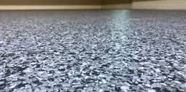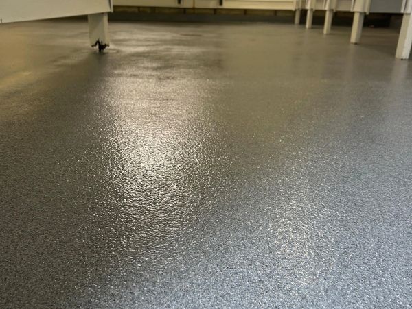 We start by mechanically preparing the substrate using a floor grinder or sander, and then make repairs to ensure the floor is as smooth as possible. From there, we install an epoxy binder and broadcast the vinyl chips until the entire surface is covered. This not only gives the floor a unique look, but it also makes the system thicker – which ultimately means it lasts longer! Our final step is to shave the chip to remove the sharp edges, vacuum, and then seal the system with a clear polyaspartic top coat. Polyaspartics, much like polyurethanes, provide a durable, shiny surface that will last a long time and be easy to clean.