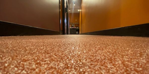 Quartz Carpet is an elegant and unique system that originated in Europe. These floors are made from crushed stone that is dyed and then coated in an oven. We can also mix and match colors to create patterns for a unique look.