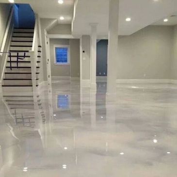 Metallic floors are made from clear epoxies and colored reflective powders. They are ART! We love brainstorming with our clients about the color schemes and realizing their dreams in the final result.