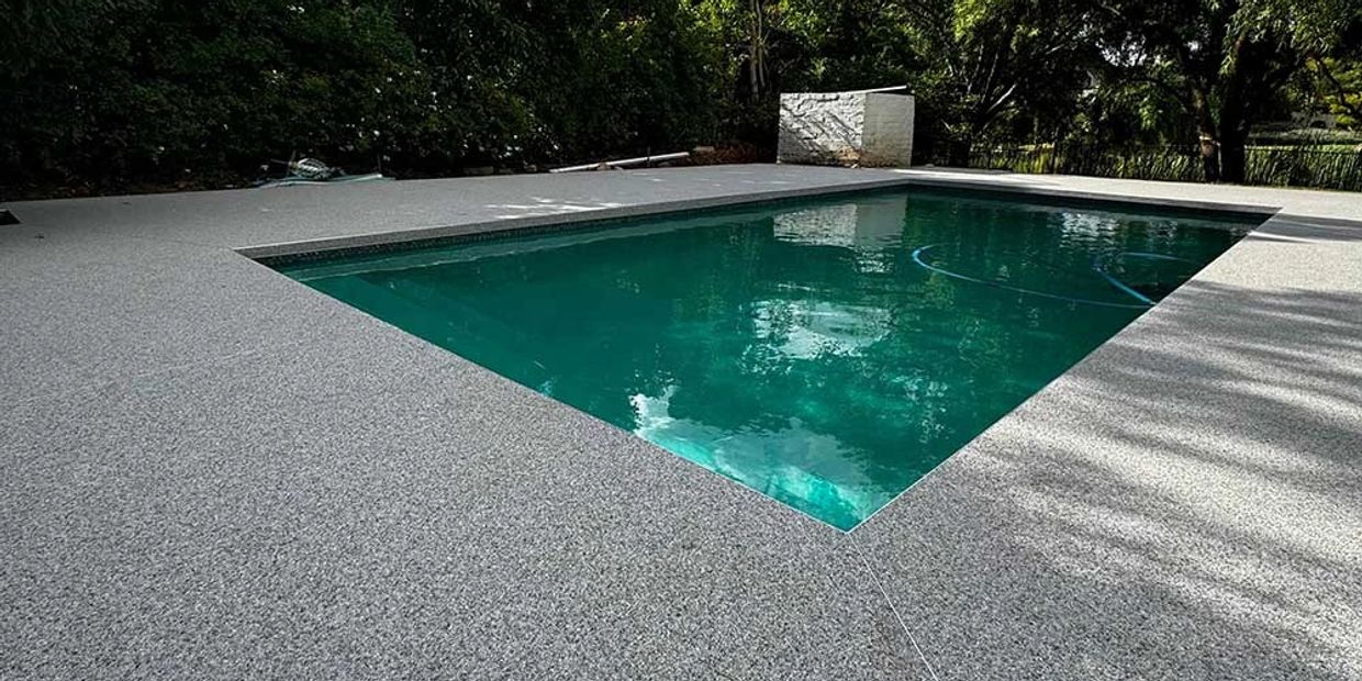 Urethane cement comes in a variety of solid colors. They are applied at thicknesses of 1/16” up to ¼” and contain broadcast aggregate that not only strengthens the material but inherently make it slip resistant.